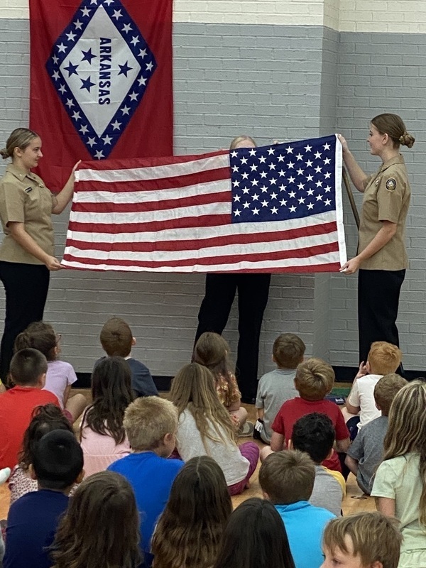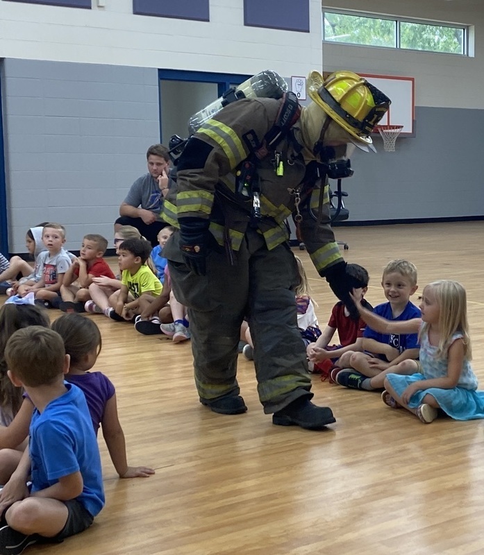 MHK had special guests today to talk about their jobs and how they keep us safe. Firefighters Doug and Tony stopped by from the Mountain Home Fire Department. They showed us the tools they use in their job and also let us see their firetruck. The NJROTC cadets from the high school came by to teach us about respecting the flag and how to say the Pledge of Allegiance.